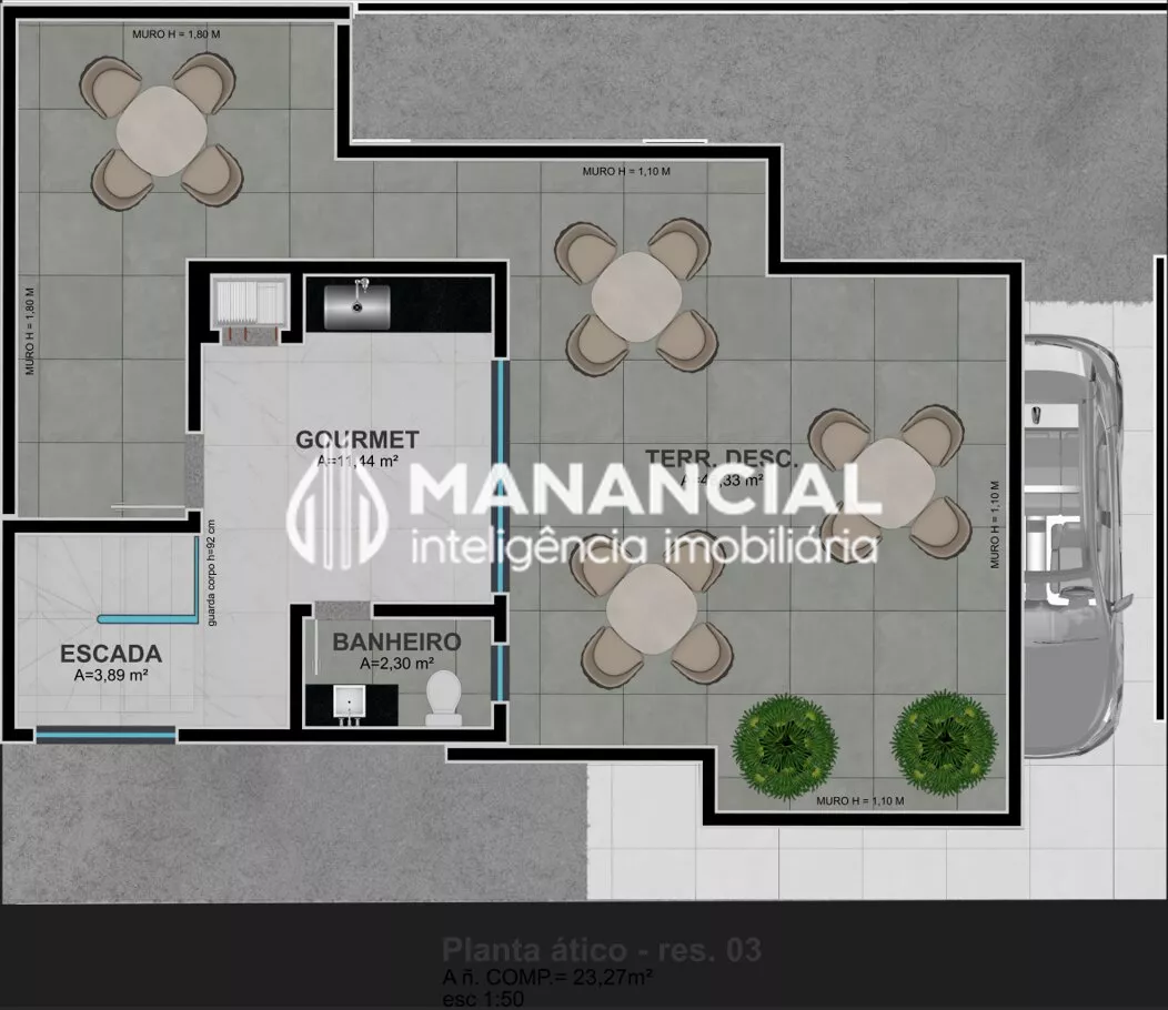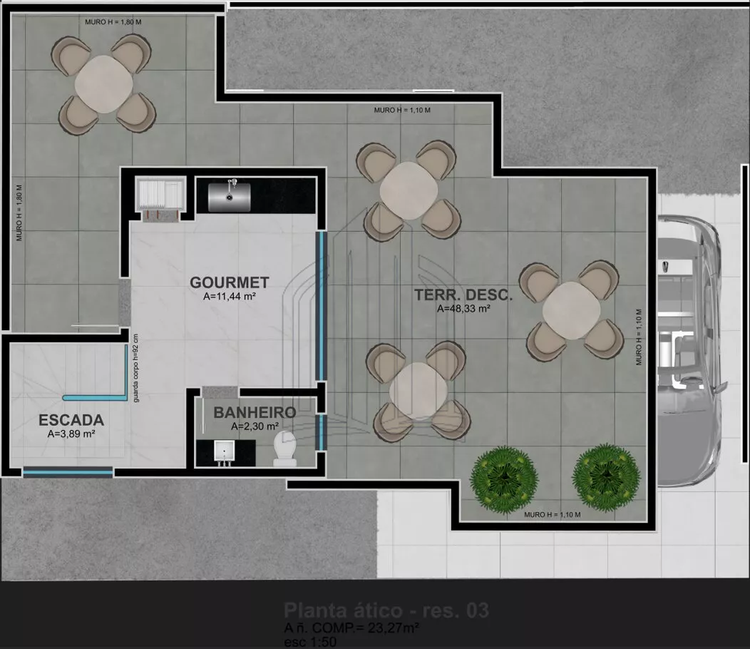 O condomínio possui apenas 4 unidades, sendo a unidade 4 a mais privilegiada, com uma área total de 219,49 m² e uma área privativa de 199,61 m².