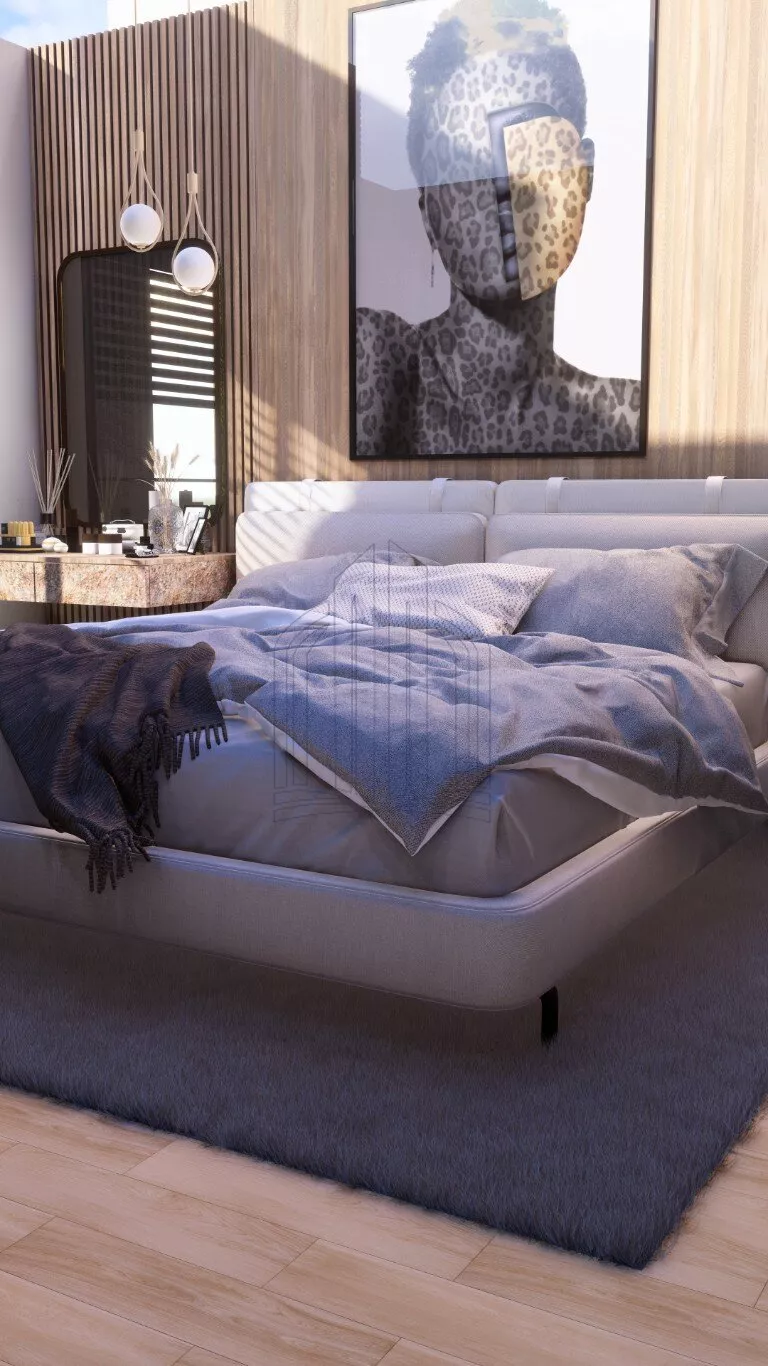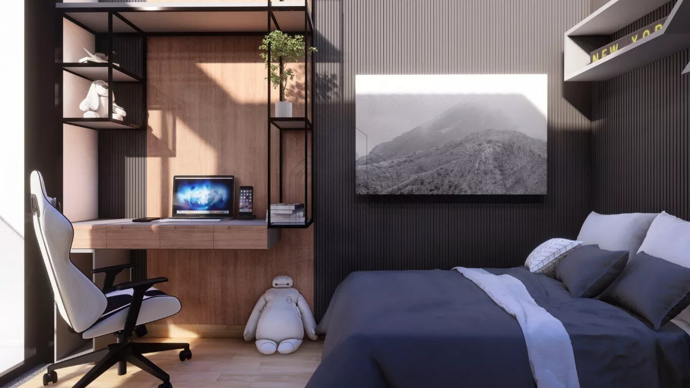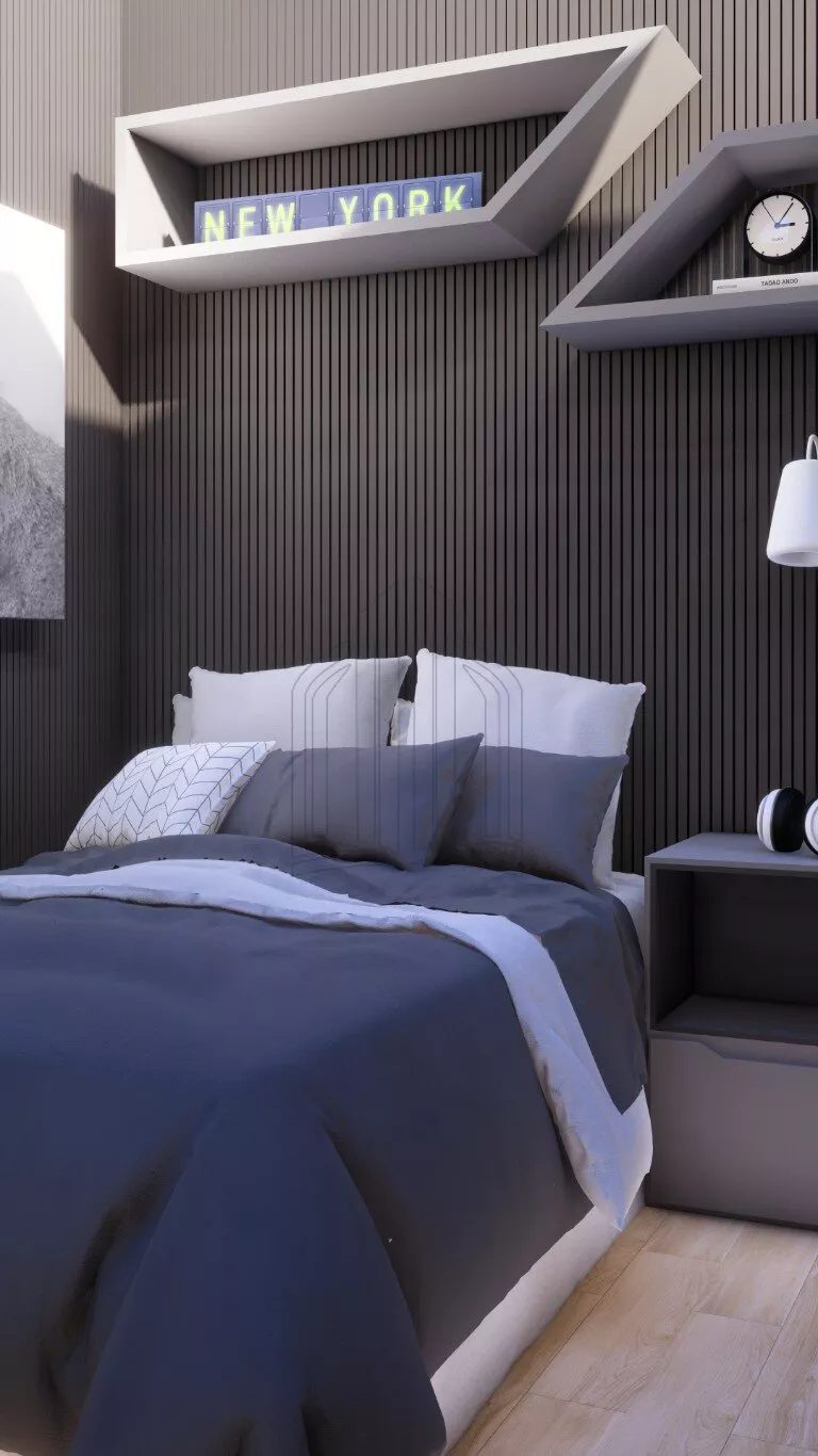 O acabamento é de primeira qualidade, com piso porcelanato Portobello ou Portinari 90 x 90, teto rebaixado em gesso com iluminação de LED, piso laminado da linha prime com rodapé de 7 cm na cor branca, persianas automatizadas nos quartos, espelhos, bancadas, cubas e torneiras monocomando nos banheiros, box com vidro incolor e metais.