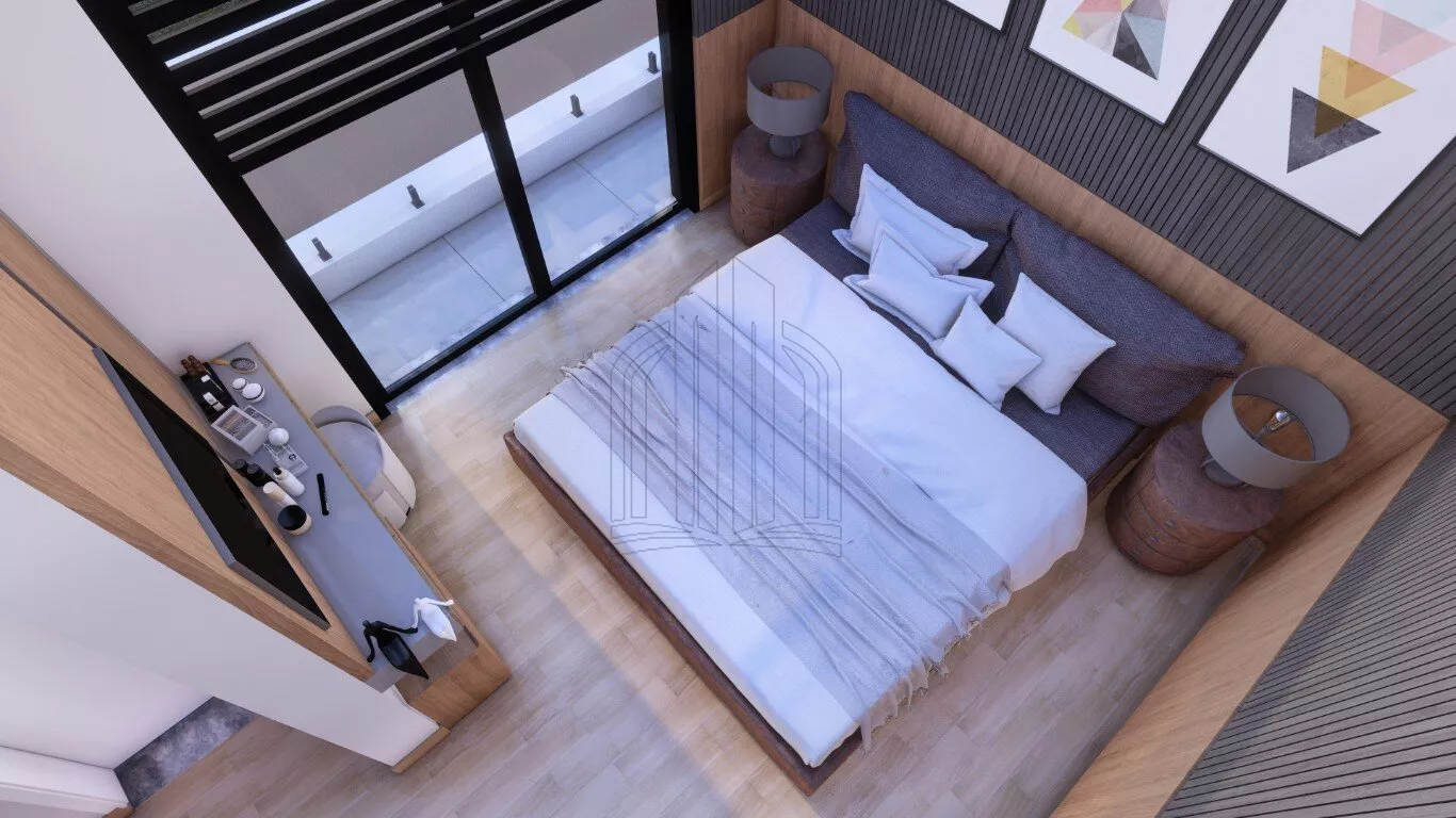 Persianas automatizadas nos quartos.