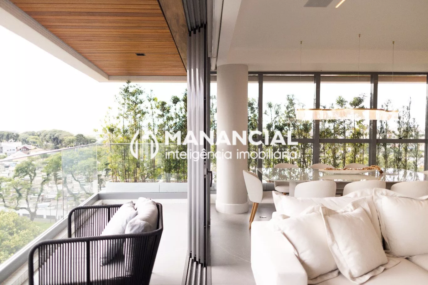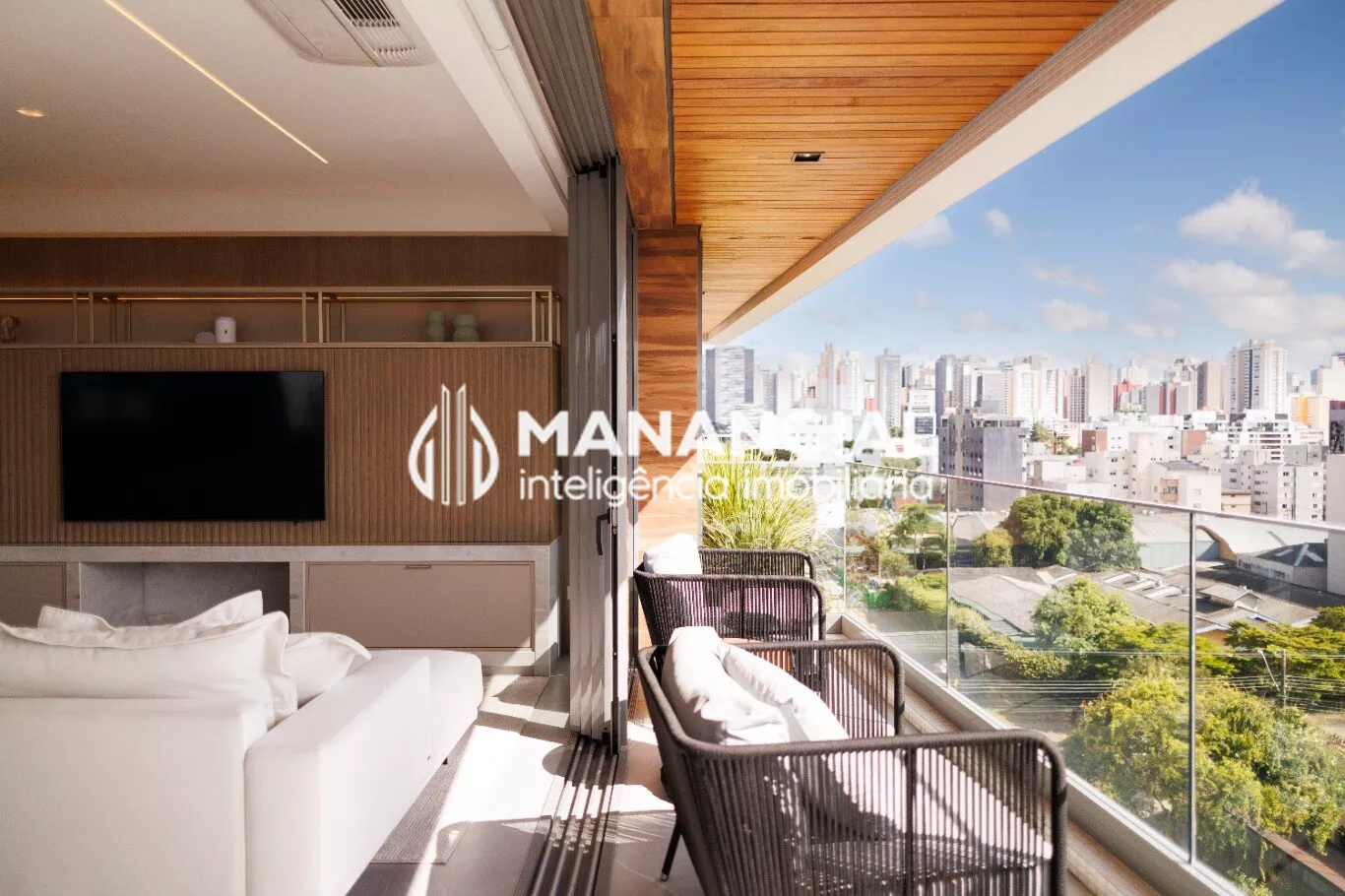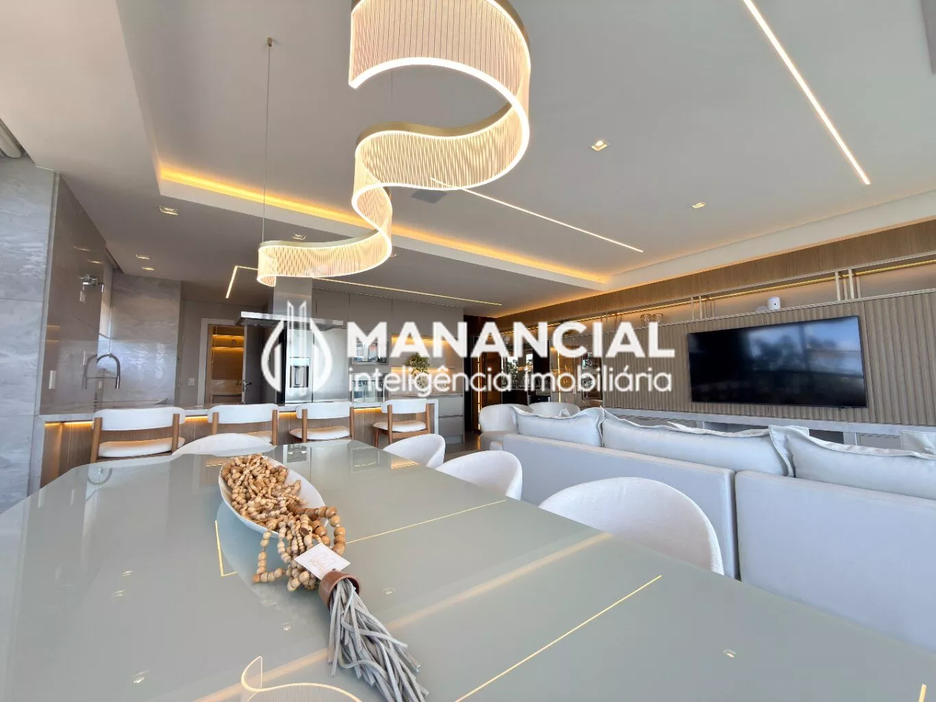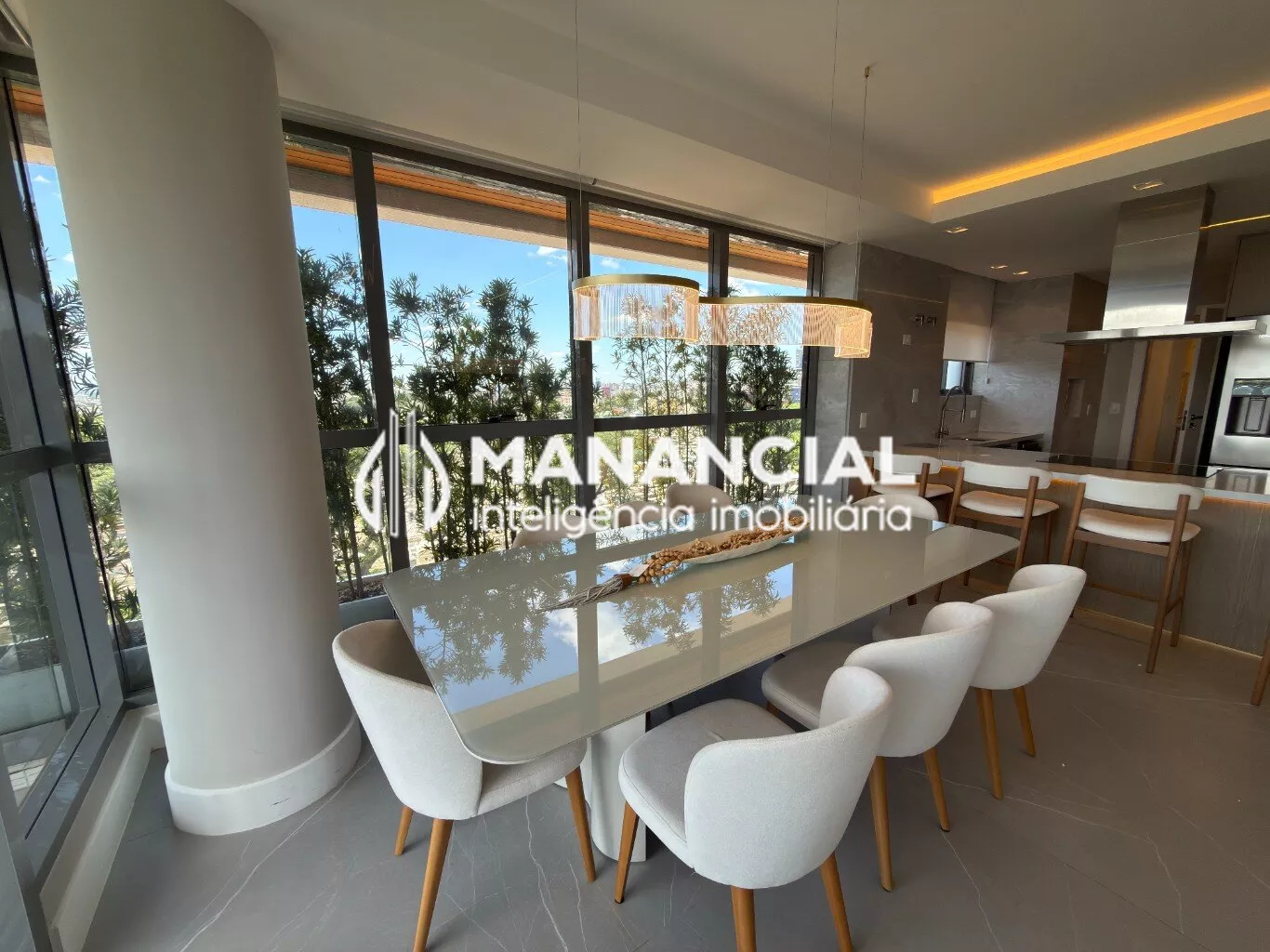 O living apresenta porcelanato de alto padrão, forro de gesso liso com detalhes e cortineiros, além de amplas janelas e esquadrias de alta performance termoacústica, que garantem luminosidade natural e silêncio.